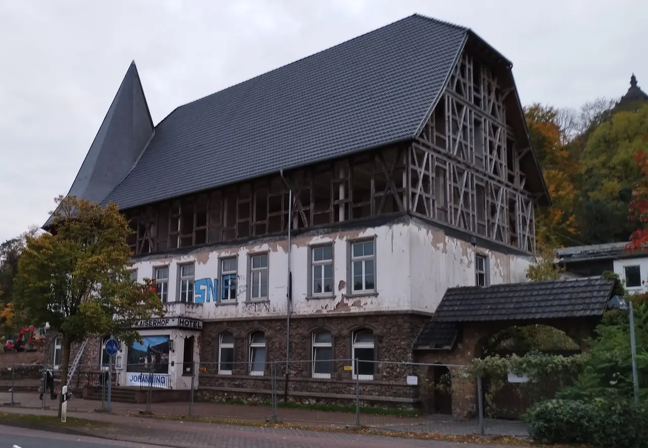 Das ehemalige Hotel wurde 2011 durch einen Brand weitgehend zerstört. Daraufhin wurden der Dachstuhl und das Fachwerk neu aufgebaut und das Dach eingedeckt. Danach hat sich bis heute aber nichts weiter getan. Seit 1983 steht das Gebäude unter Denkmalschutz.